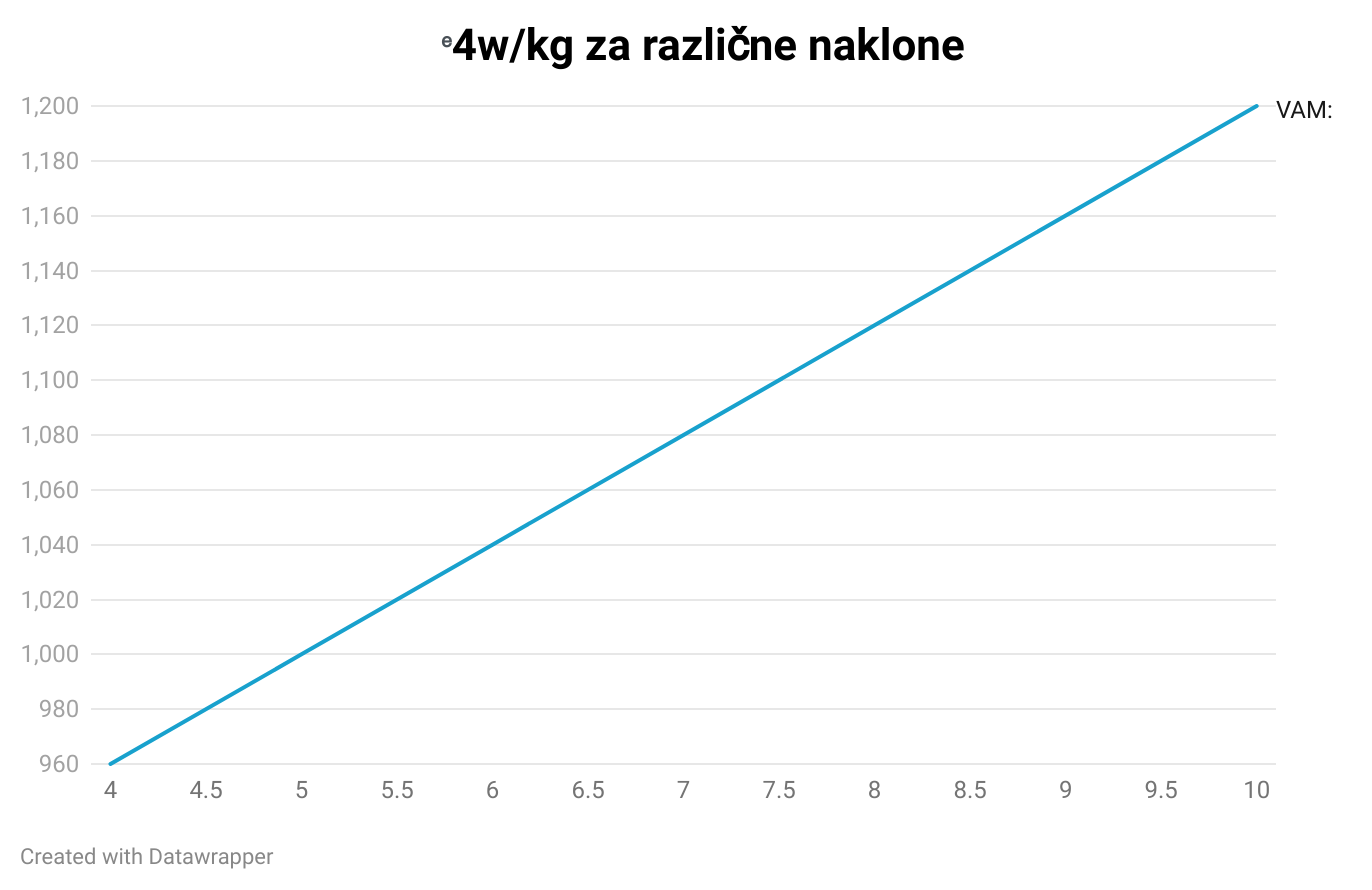 Primer izračuna za 6-odstotni naklon: 4 x (2,6 x 100) = 1040 VAM.