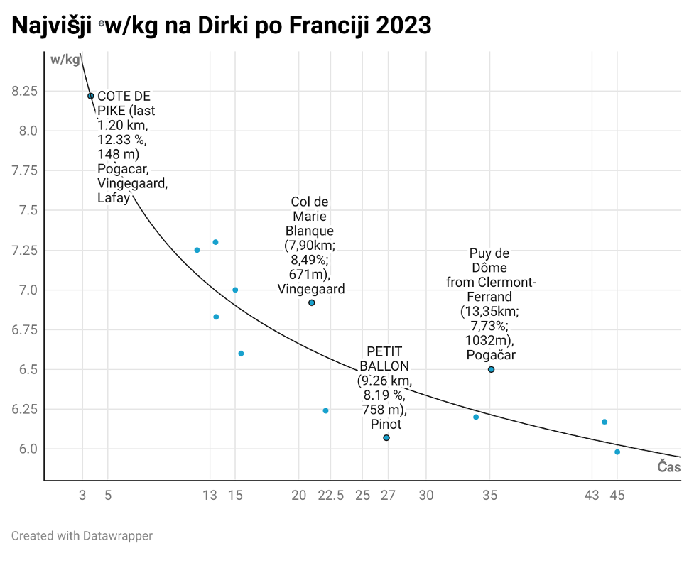 Ker pa veliko ljudi nima merilca moči pa lahko na povezavi dostopate do kalkulatorja moči, s katerim boste lahko ocenili svojo moč. Tisti, ki imate merilec moči, pa boste lahko svoje vzpenjanje primerjali z najhitrejšimi na letošnji dirki po Franciji. Treba se je zavedati, da vsi izračuni vsebujejo tudi koeficient zavetrja, prav tako je bilo kar nekaj vzponov opravljenih na višji nadmorski višini, kar dejansko moč nekoliko zniža.